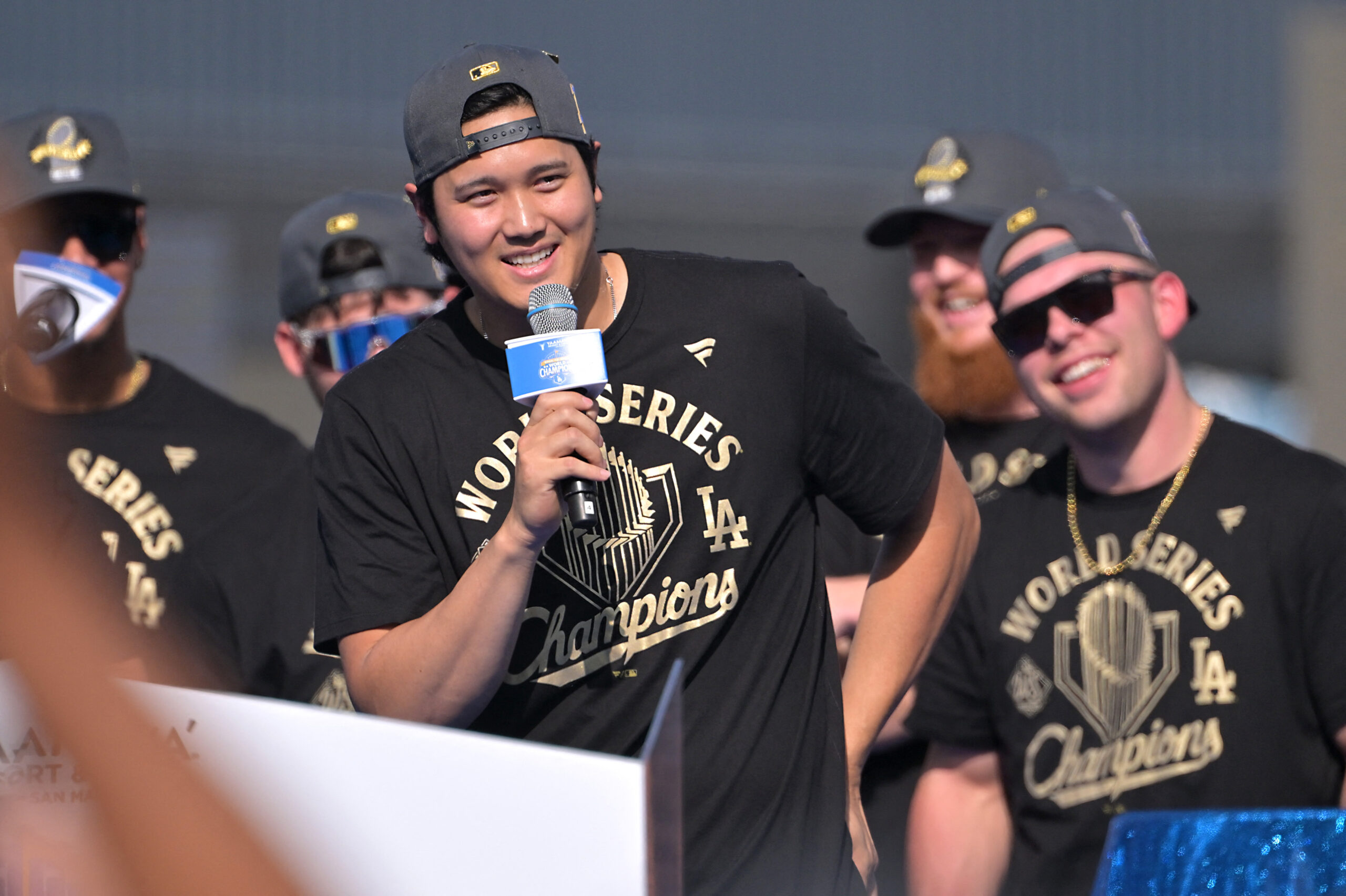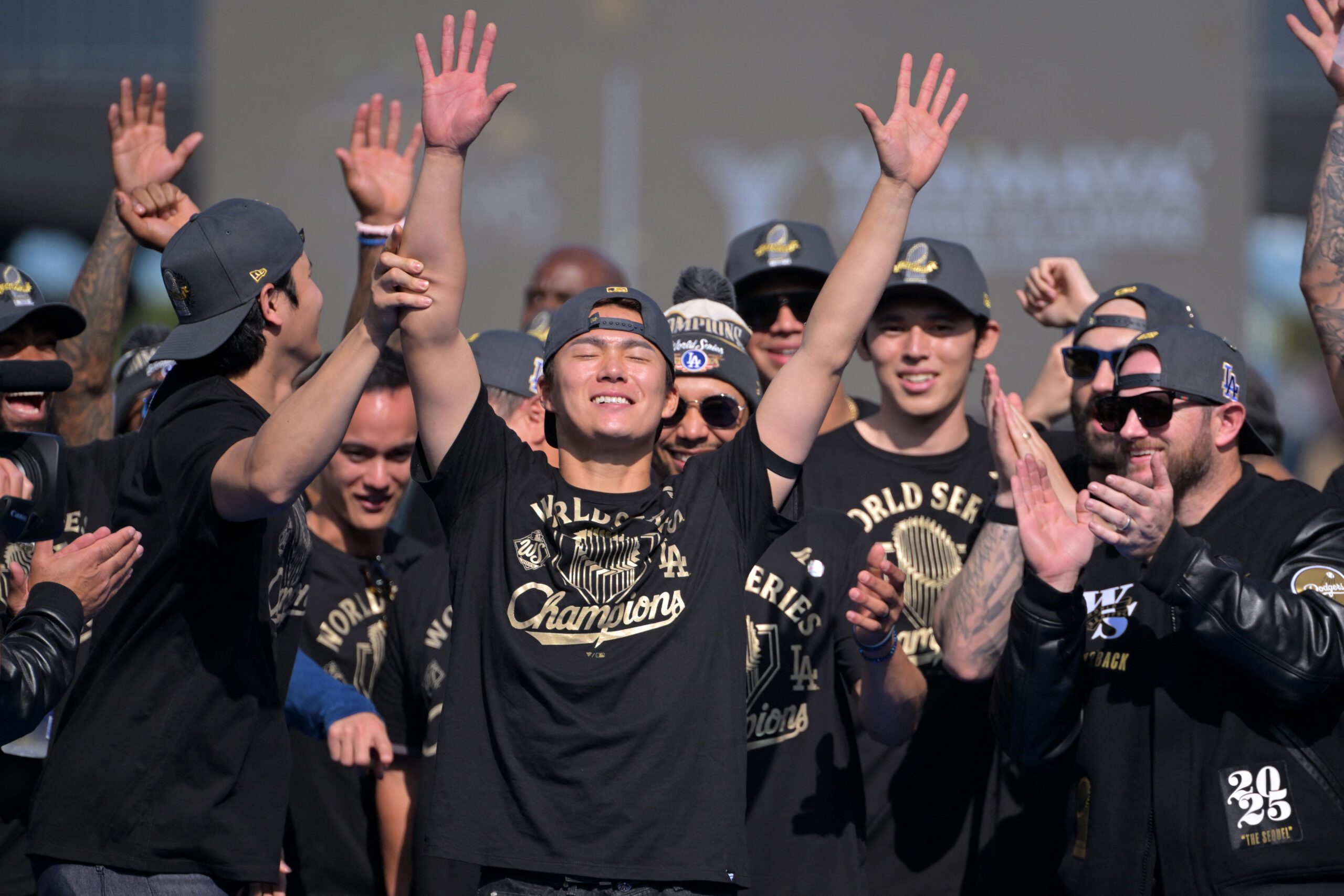 Tampoco se quedaron atrás las ovaciones a Yoshinobu Yamamoto al grito de ‘¡MVP, MVP!’ (Jugador más valioso) tras su fugaz paso por las calles de la ciudad.