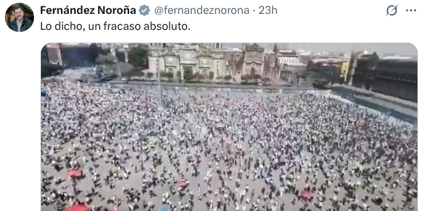 “Generación Z, resultaron los rosados de la colina, los mismos y esta vez ni siquiera pudieron llenar el Zócalo”, acusó Fernández Noroña en otro mensaje publicado esa misma tarde.